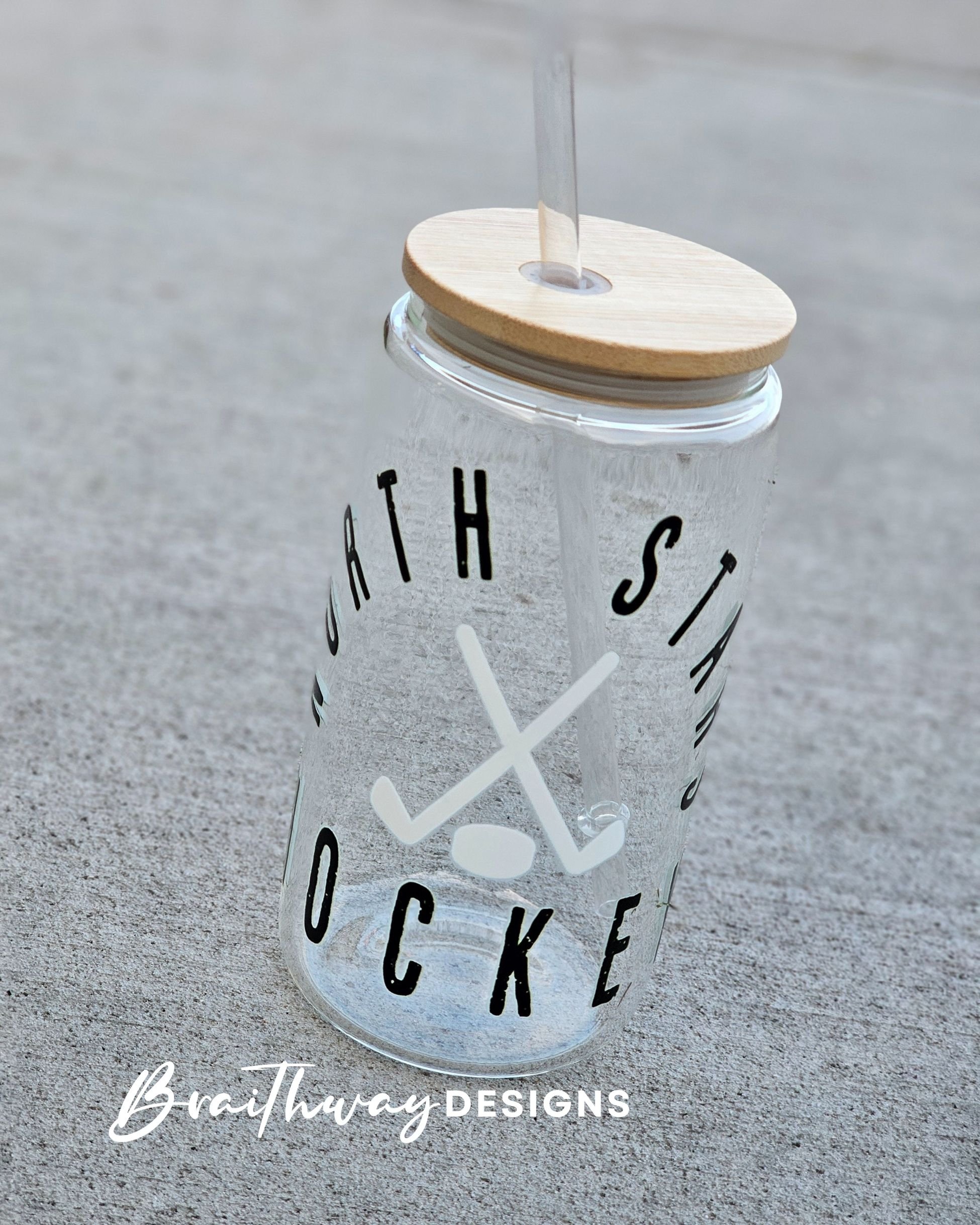 One 16oz Glass Cup with Bamboo Lid and Plastic Reusable Straw